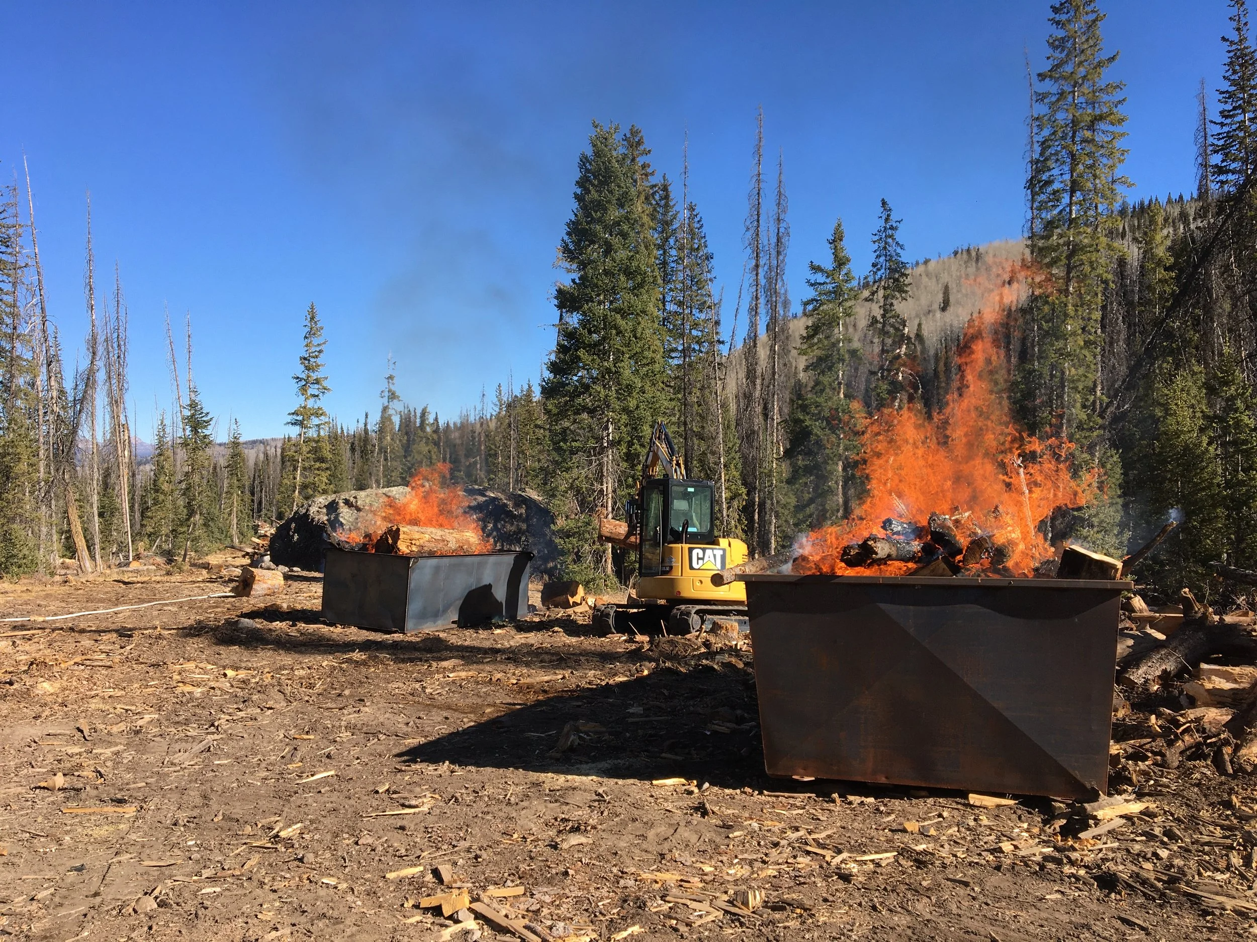 Our equipment is designed to operate efficiently at landscape scale, making it ideal for large forest restoration projects, fuels reduction, and defensible space work. By turning hazardous woody debris into stable carbon, we help landowners and agencies reduce wildfire risk while creating a valuable soil amendment.